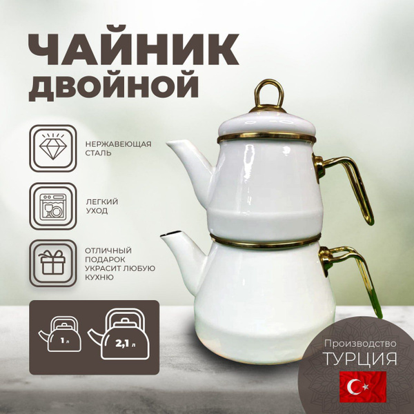Набор из 2 чайников эмалированный белый. Чайник двойной турецкий 2