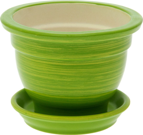 Кашпо Керамика ручной работы "Фиалочница", цвет: салатовый, золотой, 0