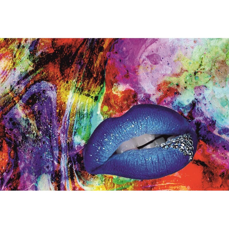 Картина на платно, Сини устни, 80 x 50 см, Дървена рамка, Многоцветен