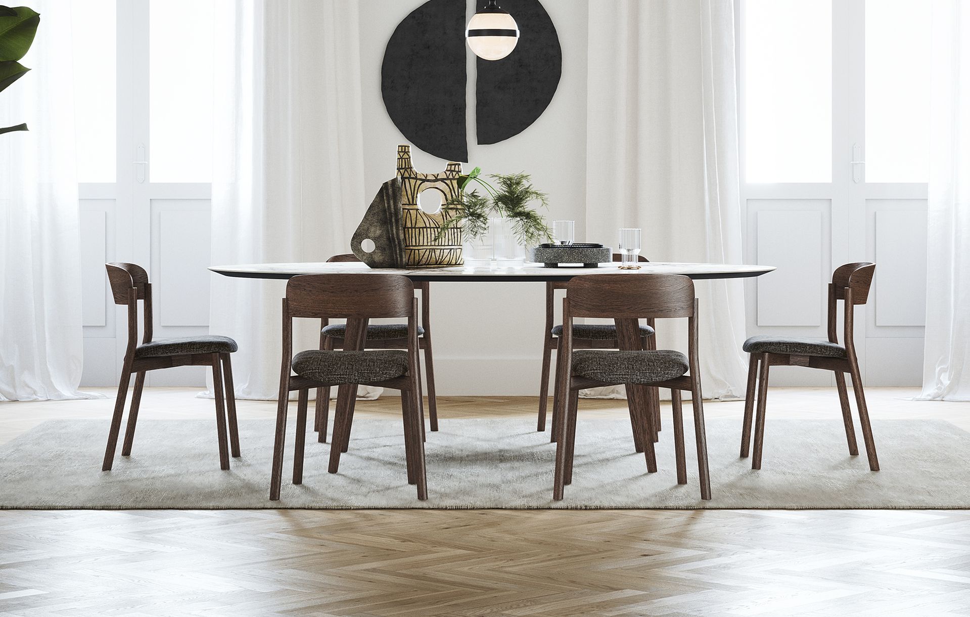 Комплект для гостиной Стол и 6 стульев Бело-серая столешница купить с
