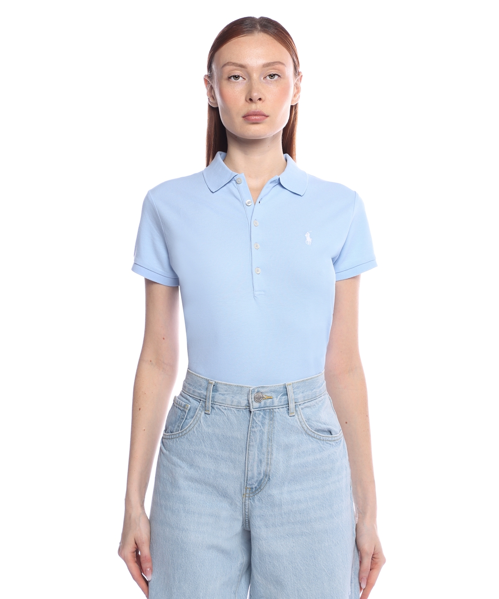 Поло с коротким рукавом из хлопка с вышивкой синее