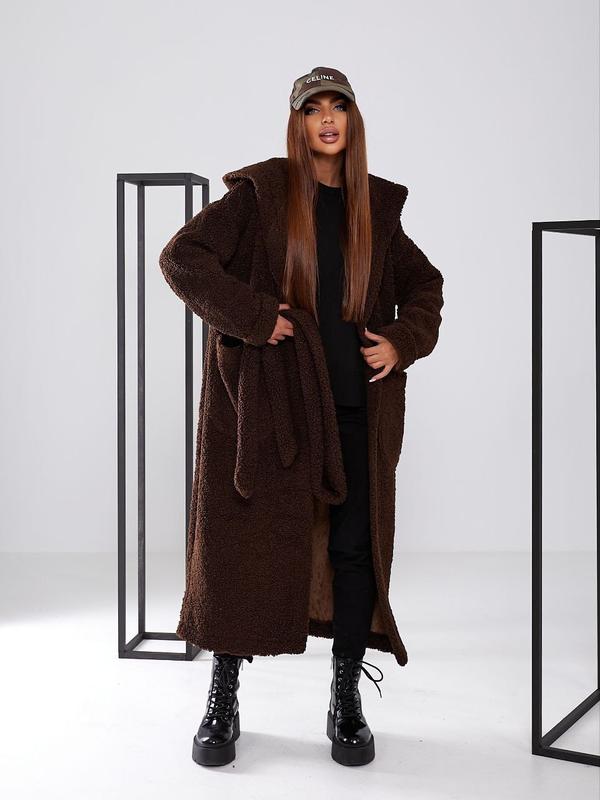 Длинный кардиган с капюшоном из искусственного меха тедди серый