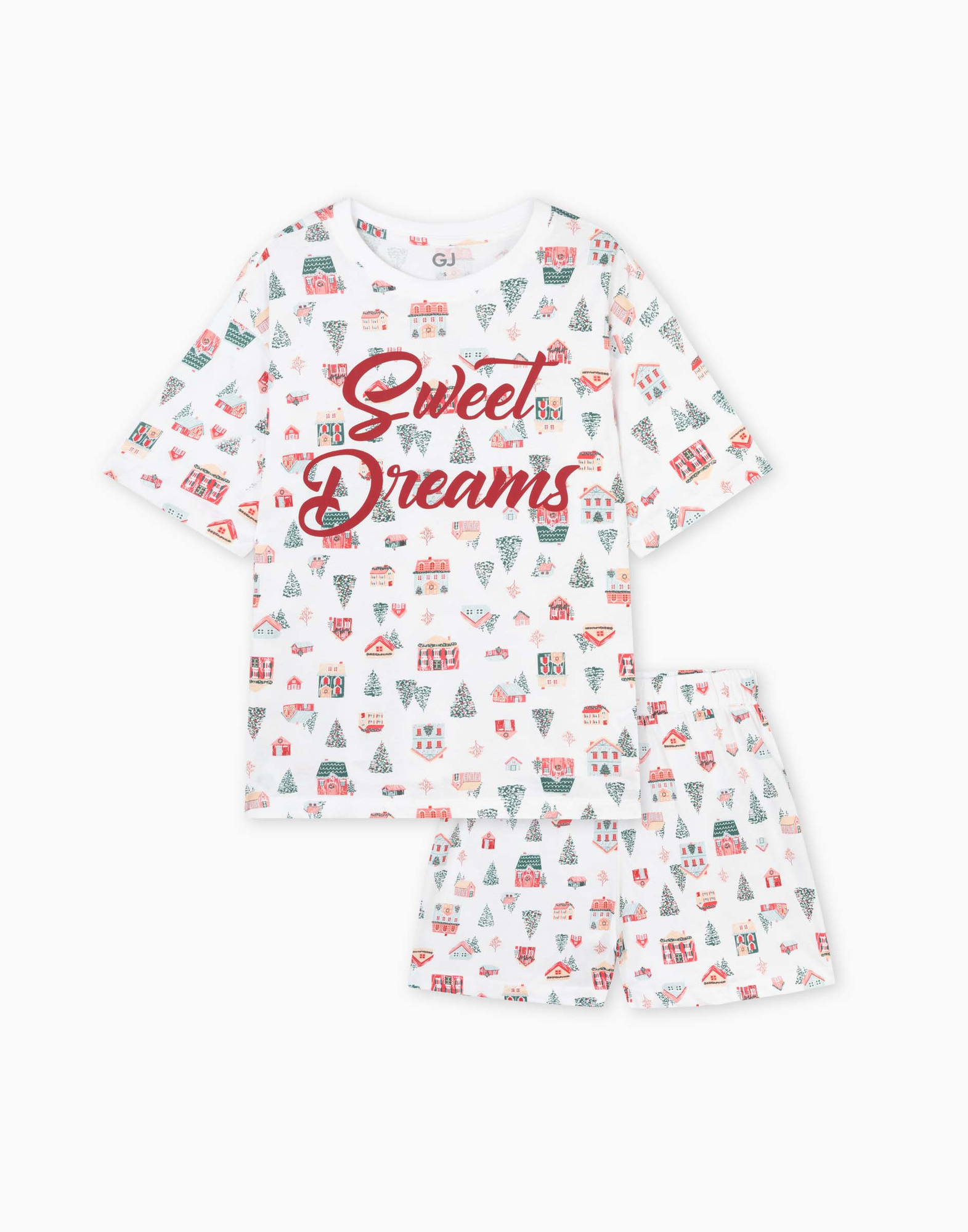 Белая пижама oversize с новогодним принтом GSL002465-1 купить по цене
