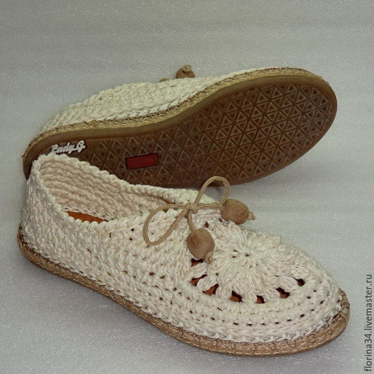 Купить Мокасины вязаные Lady G, лен, р.38, белый