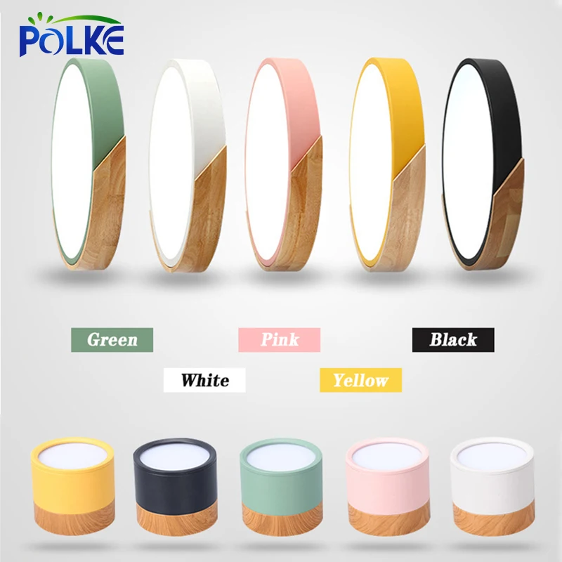 Nordic Round Led Ceiling Lamp Surface Wood Grain Light with 3 Colors