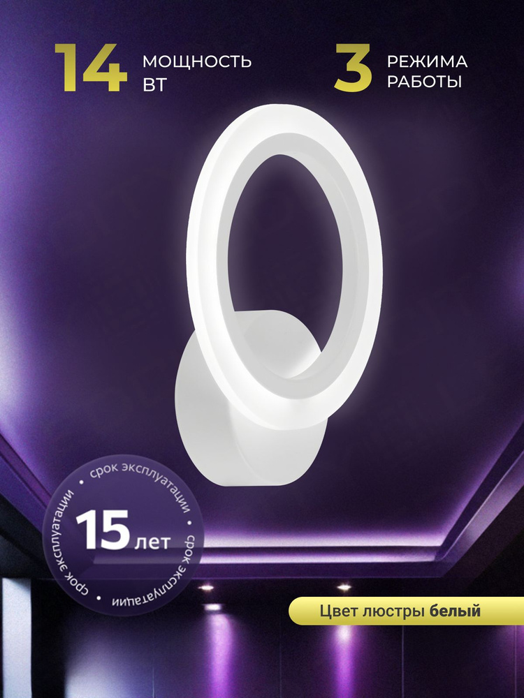 Светильник настенный, бра белый LEDCITY купить на OZON по низкой цене
