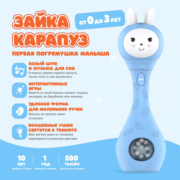 Музыкальная интерактивная игрушка Зайка-Карапуз alilo S1. Погремушка