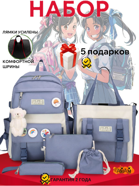 Рюкзак школьный 5 в 1 портфель для подростков купить на OZON по низкой